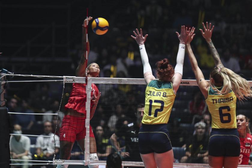 A Milli Kadın Voleybol Takımı, Brezilya’yı da devirerek üst üste 20’nci galibiyetine uzandı. Milletler Ligi ve Avrupa şampiyonluğunda üst üste galibiyetler alan Ay-yıldızlılar, Brezilya’yı da 3-0’la geçerek yenilmezlik serisini 20’ye çıkardı. (DHA)